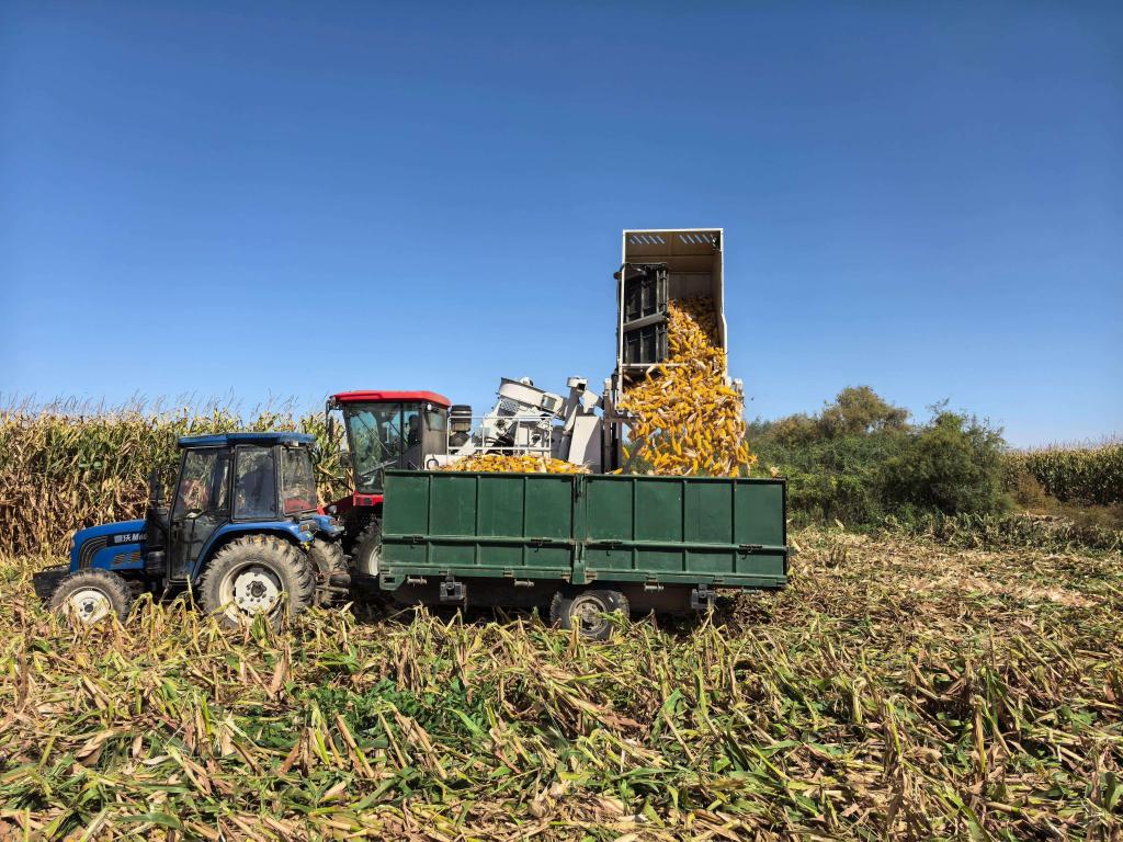 内蒙古巴彦淖尔市种植户收获玉米。新华社记者李云平摄