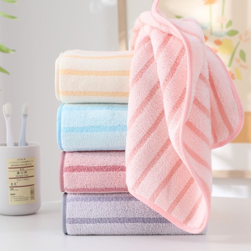 高档珊瑚绒毛巾洗脸用吸水不掉毛条纹家用
