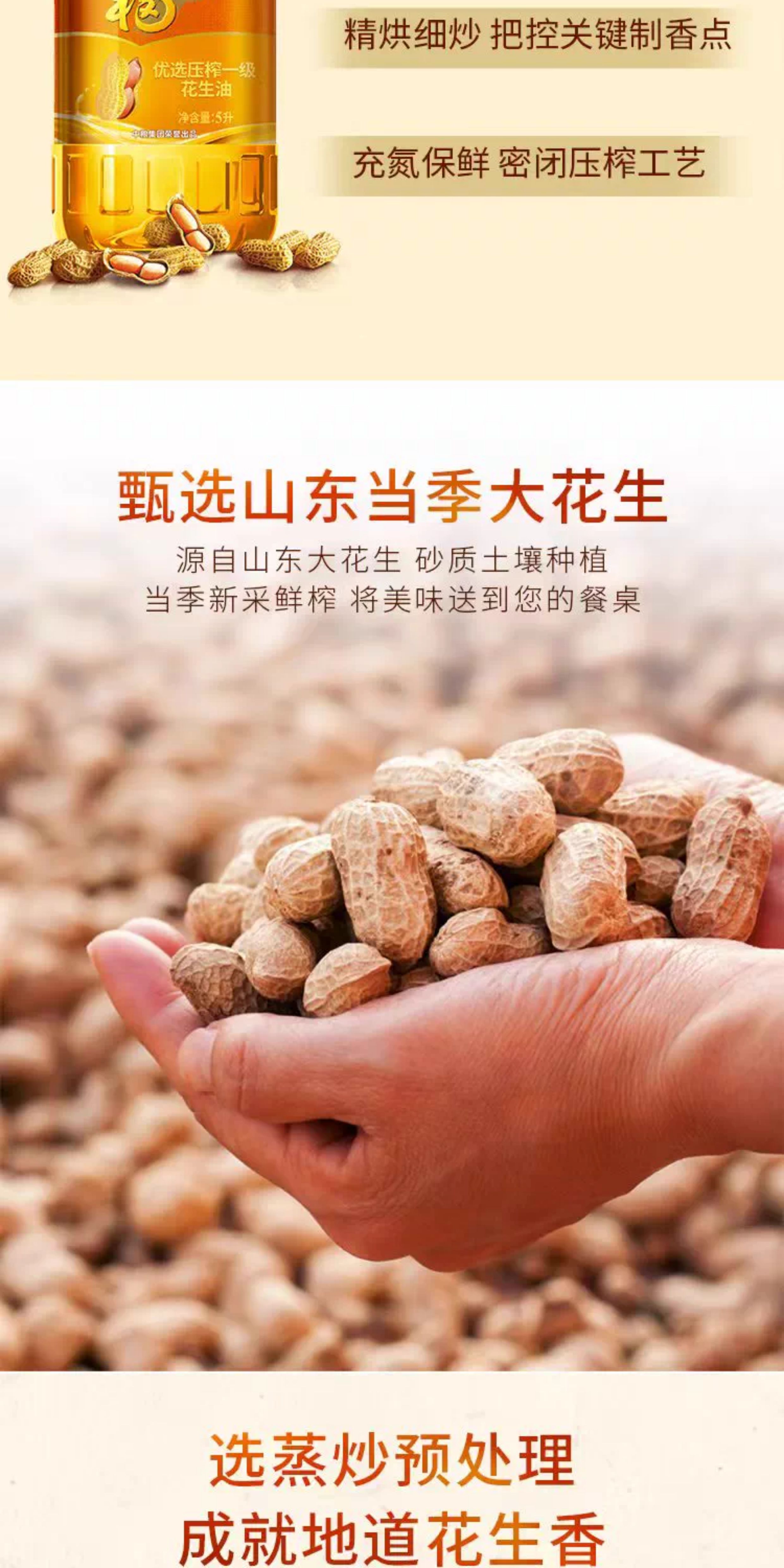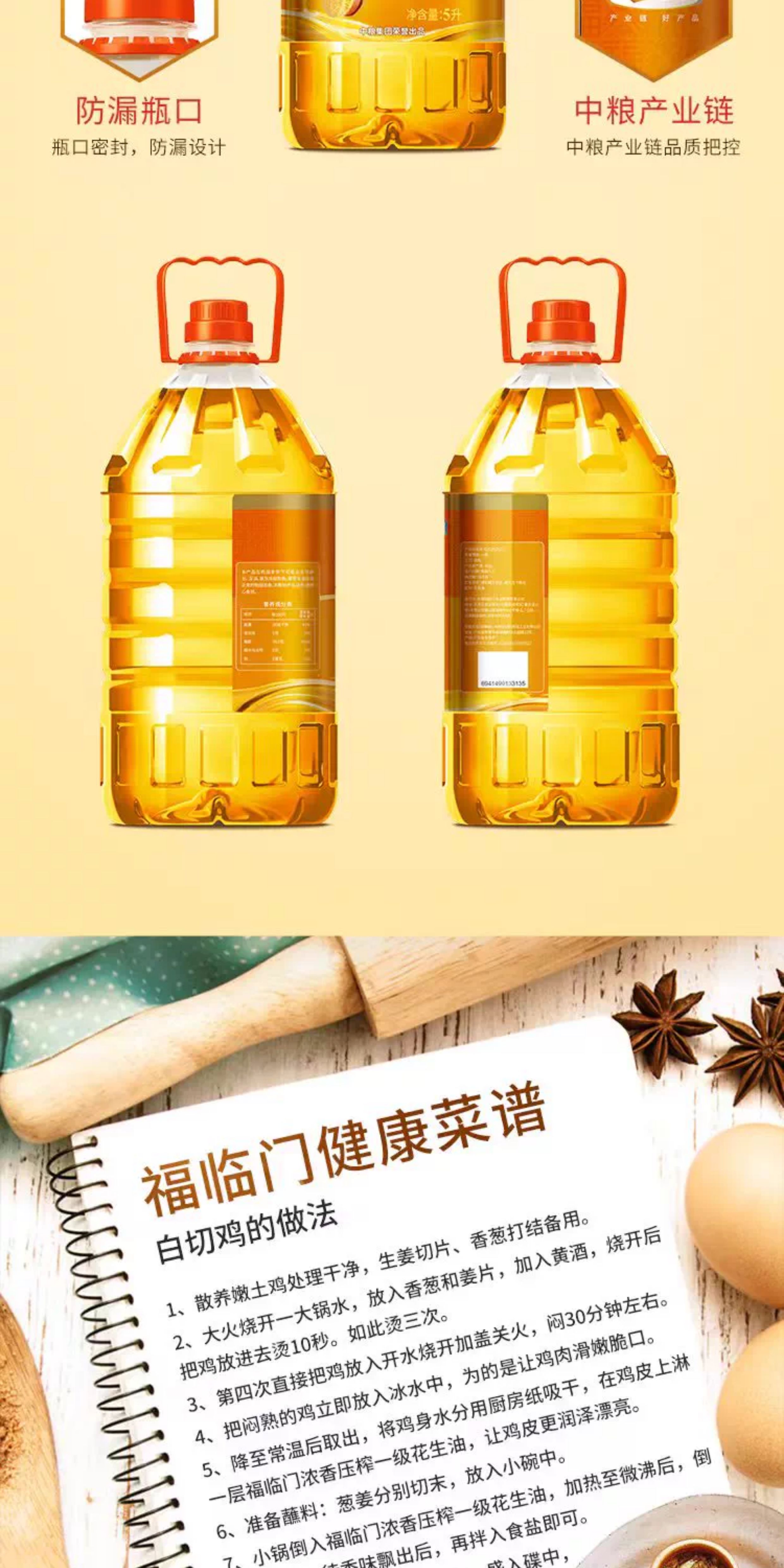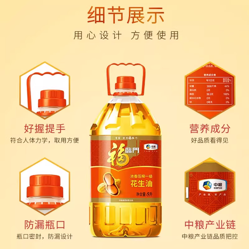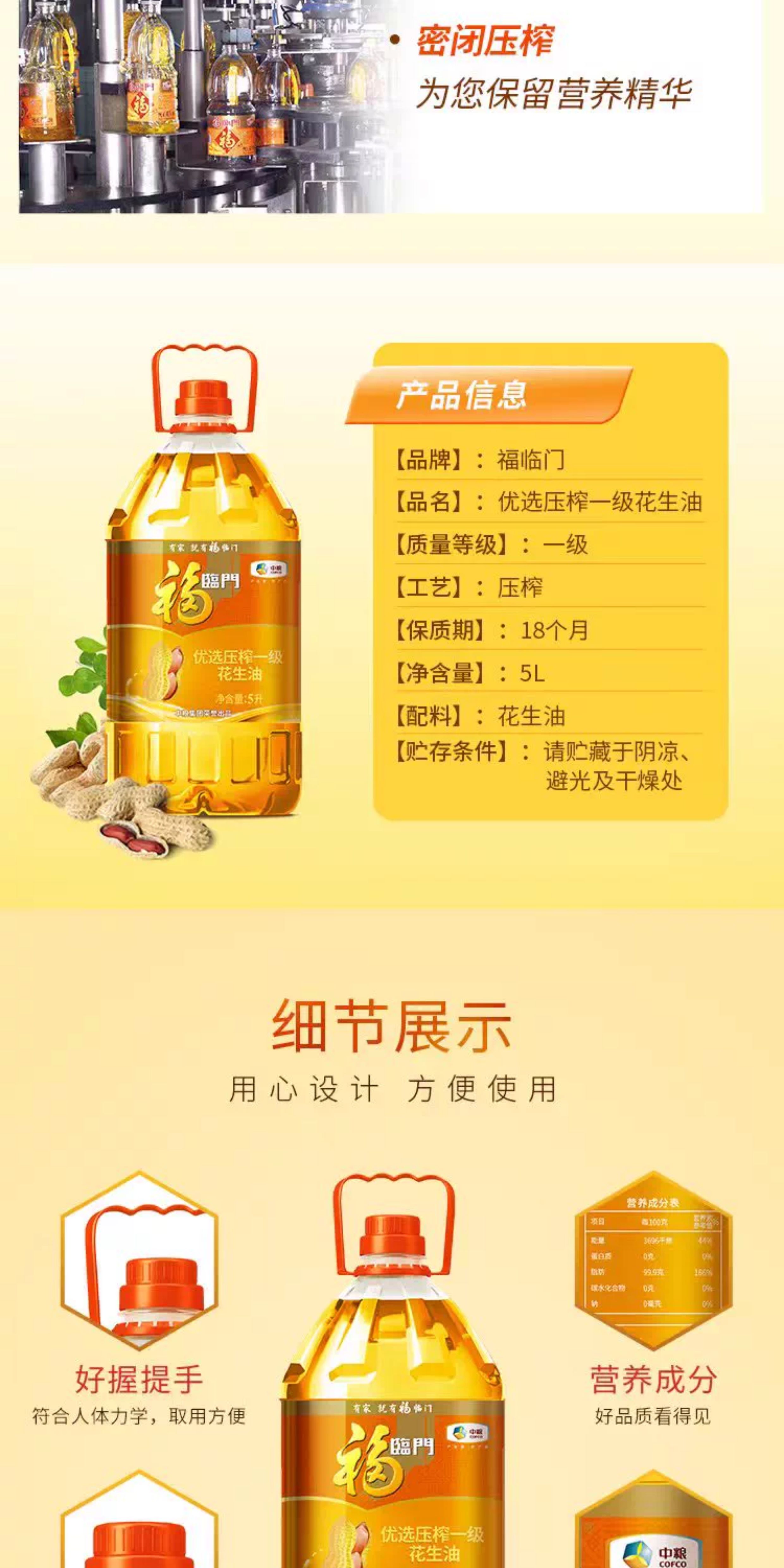中粮福临门优选压榨一级花生油5L桶